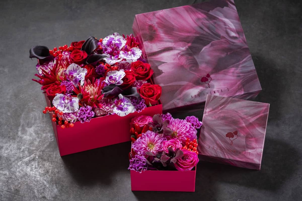 感謝の気持ちを届けるためのボックスフラワーやスタンド花。