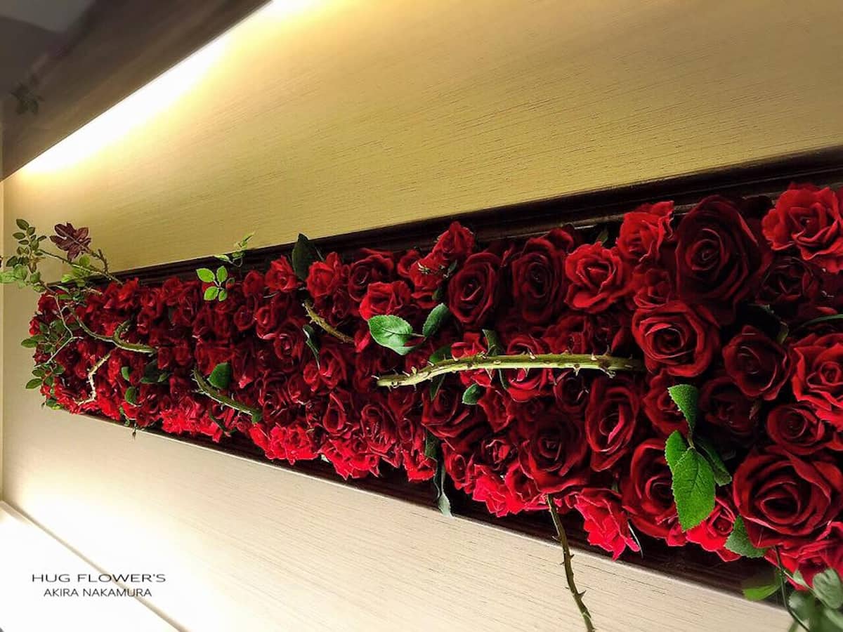 壁一面を覆い尽くす花や植物の室内装飾。 生花ではなくアートフラワー使い、 新たな発想で内装をプロデュースします。